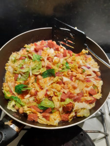 We did however add a handful of asparagus spears at the stage where you also add the fish. I only noticed afterwards that it also says half the olives – but you know what? Stuff that. I’d already sliced the potatoes, so what more did they want?