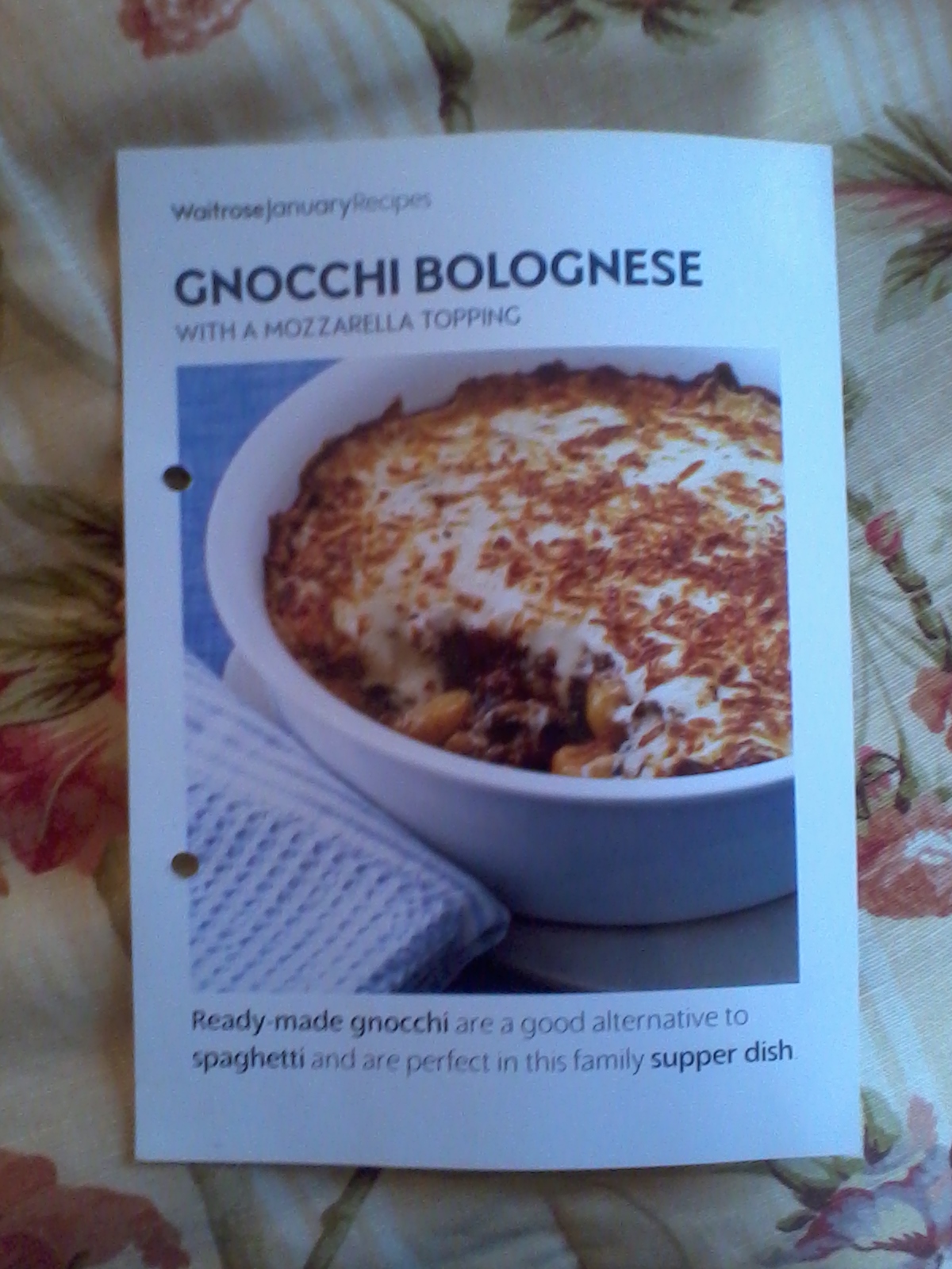 I love the gnocchi bolognese recipe we got off a card from Waitrose.
